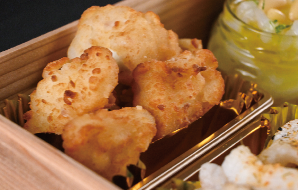 骨を除き食べ易い形に切って、3種の粉で揚げました。