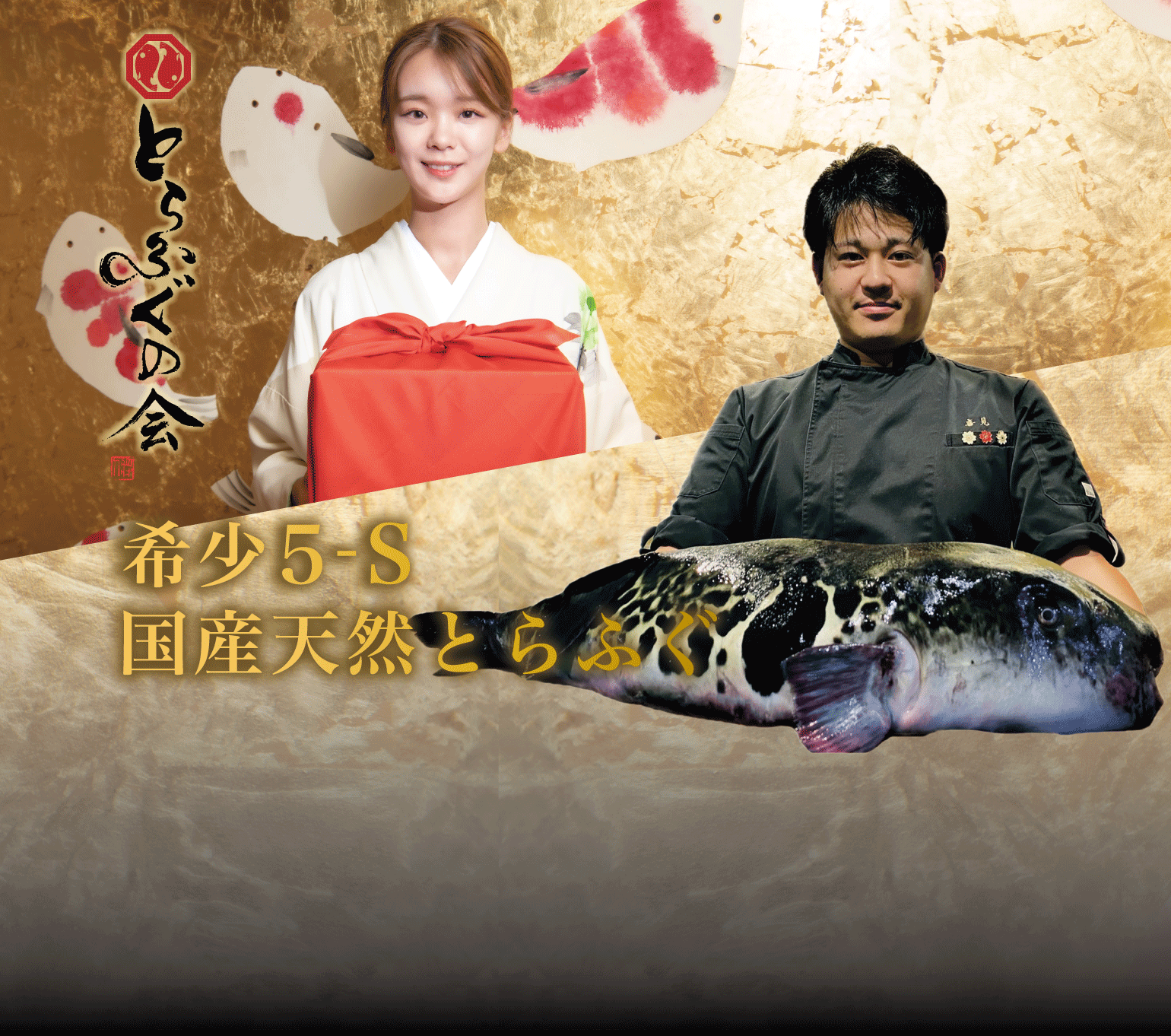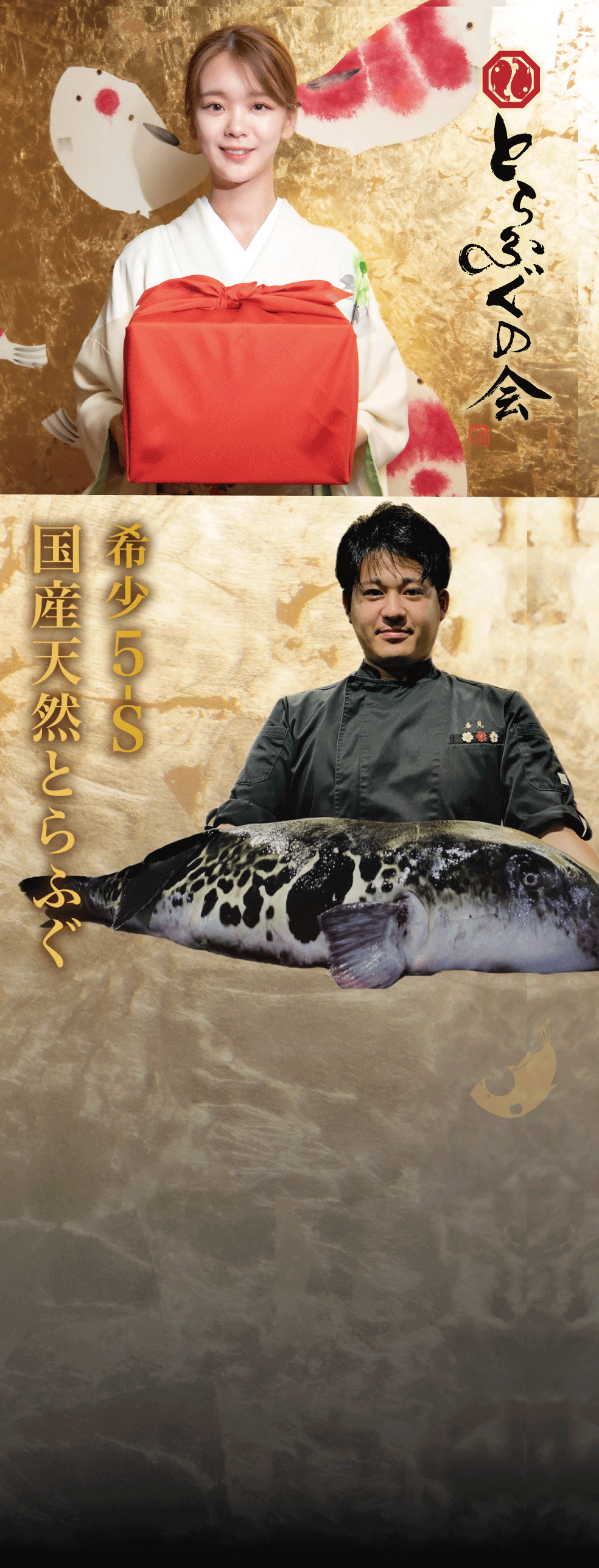 年間にたったの約300トンほどしか獲れていない『天然とらふぐ』。その中でも特級5-Sクラスである3キロ〜8キロの最高峰はその中でも数%程度。白子に至るまで5-Sのみを使用しています。
